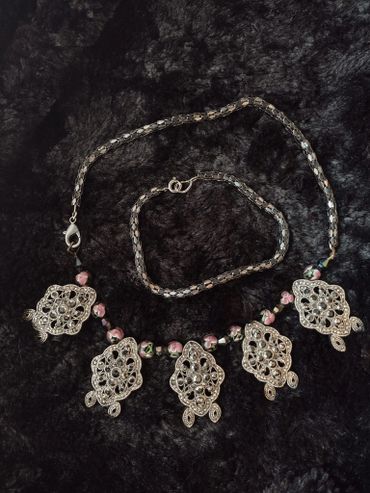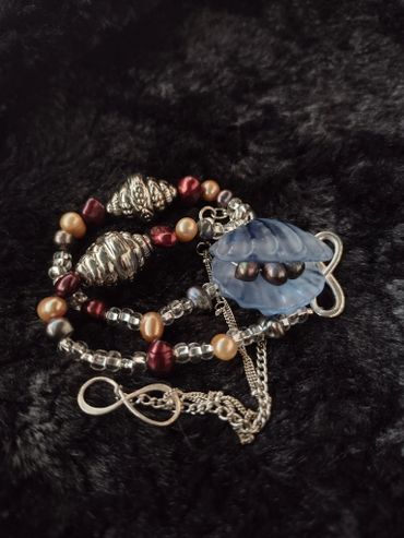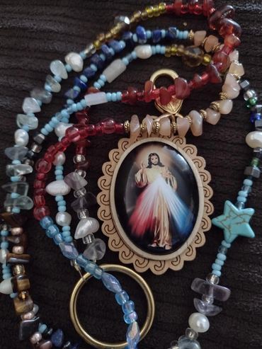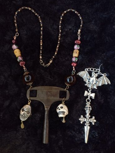My creations focus on using damaged items, old jewelry, used baubles, or any items I can get my hands on that have a potential for a new life. I strive to use as many viable repurposed parts as possible. Beads are restrung, chains are repaired or combined, and old things are Re-Created to be new treasures.